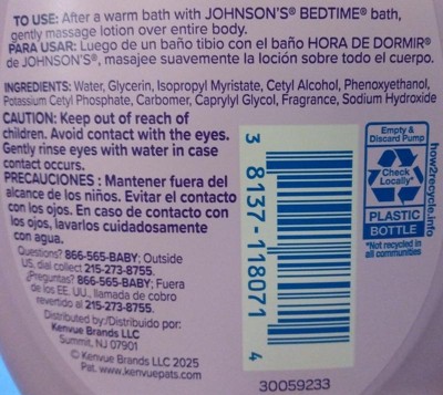 [This review was collected as part of a promotion.] The bedtime baby lotion comes in a huge bottle. It is easy to use with the pump on top. It seems effective with comforting my baby to sleep and stay asleep.