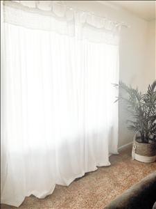 I have the white Lydia Curtains and I absolutely love them! They go perfectly with farmhouse style decor. The top of the curtains has to be made into little Knott’s so that you can put it into the curtain rod. Which I absolutely love because it gives it a little more character.