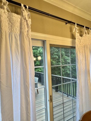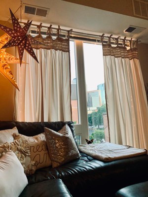 [This review was collected as part of a promotion.] I love the design of these curtains. The ties allow you adjust the length of the curtains. The white was a pure white and very elegant for dining space.