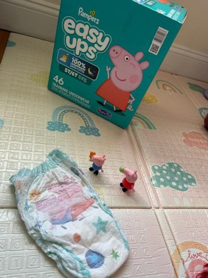 [This review was collected as part of a promotion.] I love them a with my 2 daughters I used pampers brand and this easy ups for training are the best and soft for my daughter she’s start seen peppa pig shows and she’s more happy to used them as well she’s ready for training she’s 3 yrs old she’s skinny 32 pounds and she used 5t/6t