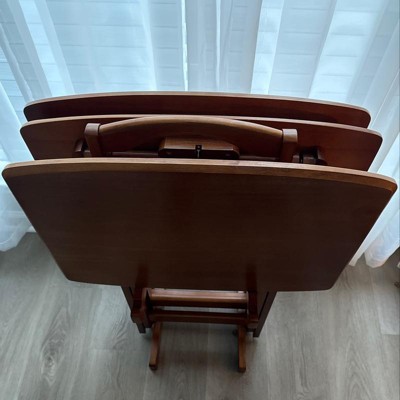 Solid wood, sturdy and large snack tables in a beautiful rich espresso finish.