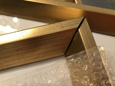 The photos were delivered and inside the matting is all dirty. I returned them and ordered new ones and the same thing plus a defect on the glass.