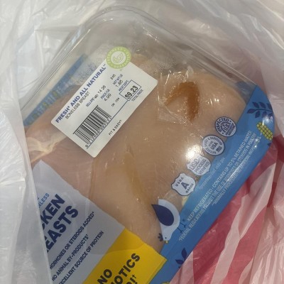Very strange meat. The chicken did not look right. Looked like meat I’ve seen posted on tik tok that looks fake/glued together/or lab created. Looked normal until I used my meat mallet and cut into it. It disintegrated and looked like small pieces of meat glued together or something. Very stringy and odd. Not anything like other chicken breasts I e bought before. I will not buy Purdue again.