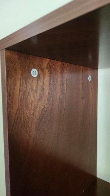 The shelving unit is self is fairly decent. However, the manufacturer's missed the mark by exposing the L-shaped support brackets in between the shelving units and also exposed the bolts. They could have achieved stability in another Manner and added wood grain stickers to cover the bolts. Missed the mark on that one!