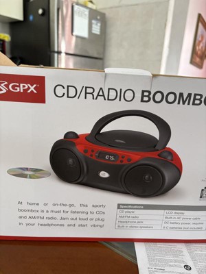 GPX CD, AM/FM Boombox - Red (BC232R): Portable 3.5mm Jack, Built-In Speaker.