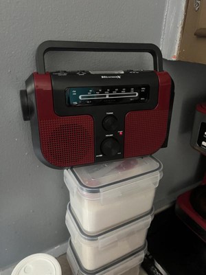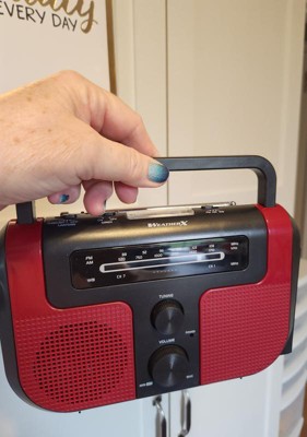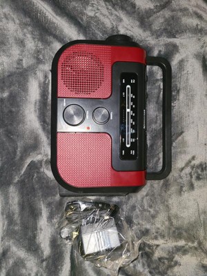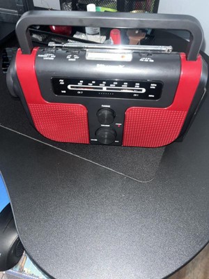 WeatherX WB/AM/FM Solar Charge Radio - Red (WR383R): Hand-Crank, USB Port, NOAA Alert