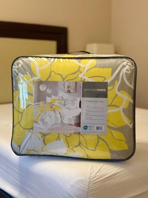 The Madison Park Jane Bedding Set transforms your bedroom into a beautiful and graceful space. A gorgeous floral print pops against the solid cotton sateen fabric for a stunning transitional look.