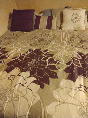 [This review was collected as part of a promotion.] The 7 piece comforter set is beautiful,It comes with 3 decorative pillows.The colour and floral design looks beautiful in your bedroom.The fabric is soft to touch and it fits perfectly in my queen size bed.