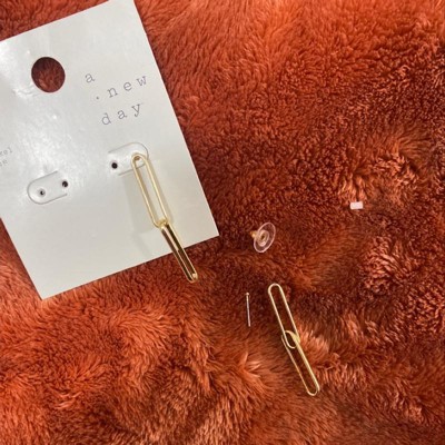 For a distinctive look, add a pair of Link Earring from A New Day™ to your jewelry collection. These unique nickel-free earrings feature a two-link design with a standard straight post fixture at the top of one link, and they're finished in a bold gold tone for a touch of shine. The lightweight construction makes these earrings comfortable for all-day wear, and at a drop length of just under two inches, they'll add style to your outfit without stealing the show.