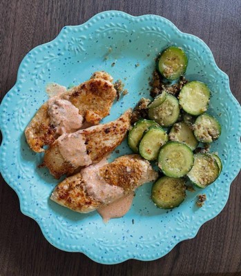 [This review was collected as part of a promotion.] When I first got the chicken it was so tender already just taking it out the plate. And once I added all my ingredients on it and put it in the pan it grilled perfectly . It didn’t feel rubbery and it was so soft to chew! It was juicy and easy to cut so I made chicken sandwiches and it was amazing! It’s easy to store in the freezer for next round.
