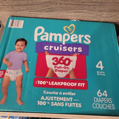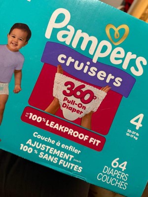 Pampers Cruisers 360 pull-on baby diapers provide our best fit and protection for your active baby at any stage. Unlike ordinary disposable diapers that gap in the back, Pampers Cruisers 360 diapers stretch comfortably around your baby's waist and adapt to their every move for a flexible, Babyproof and gap-free fit that is up to 100% leakproof. Plus, they feature our Dual Leak-Guard Barriers that gently seal around your baby's legs, where leaks happen most.