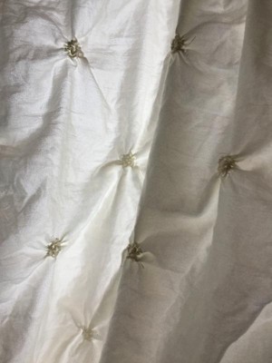 I purchased the ivory pair that are soft and lovely in my guest bedroom. I will not be returning them but lining is not attached at top of curtain in several areas. This makes the lining too long as the curtain hangs. I can sew the lining into the top hem myself but am disappointed in the craftmanship.