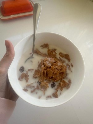 A reliable and nutritious cereal with crunchy bran flakes and natural sweet raisins-great for a quick fiber-rich breakfast.