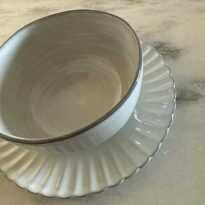 These “gray” bowls match the “cream” scalloped plates perfectly. Just in case anyone has the problem of finding matching bowls for your plates