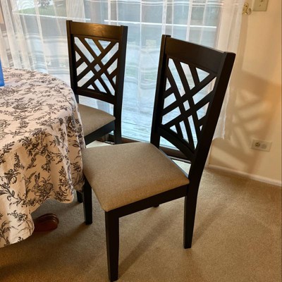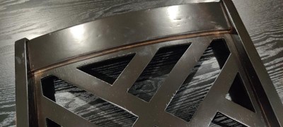 Bought to replace current chairs. Chairs came quickly. Easy to assemble, no nicks. Strong smell from the stain but smell went away after a few hours. In between the lattice work could have been sanded to a smoother finish. So far the chairs are sturdy and looks great with my table.