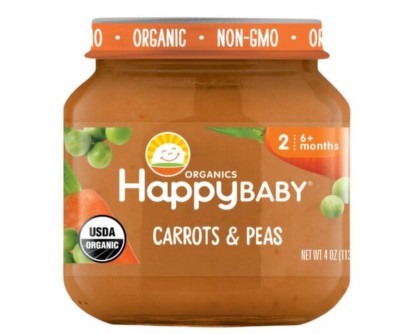 Happy Baby Organic Carrots & Peas Baby Food Jar - 4oz: 6 Months and Up, 2nd Stage, Pureed, Ready to Eat
