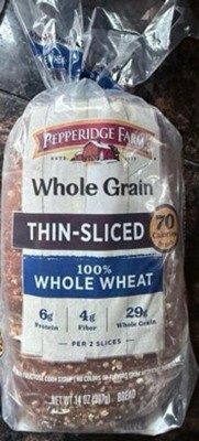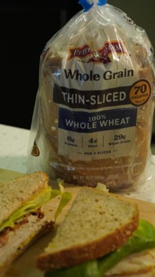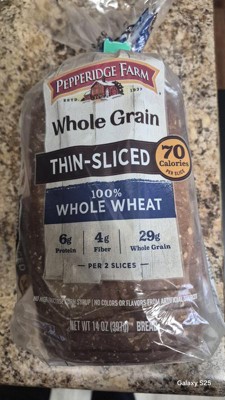 [This review was collected as part of a promotion.] Pepperidge farm whole grain thin sliced 100% whole wheat it is great option for anyone looking for a healthier lower calories bread without sacrificing taste especially if you prefer lighter meals