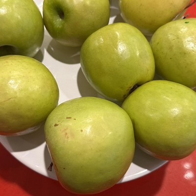 I ordered these for curbside pickup. The green apples have started turning yellow and have bruises all over them. For some reason, the apple skins are unusually greasy. And they taste bad too.