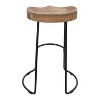 Complete the look of your home bar with this appealing barstool accompanied by curvy metal base. Its sturdy construction features mango wood saddle seat along with a footrest that provides a comfortable sitting. Perfectly designed to be a great addition in restaurant, cafes and bistros.