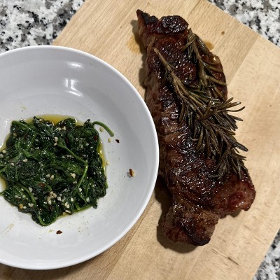 After reading the reviews and I had already bought the steaks, I was worried 😂The steak was actually pretty good. I think some people may not know how to cook a New York strip and that may be part of the problem. These were tender and had good flavor. From the looks, I was unsure but they were buy 1 get 1 50% off. I needed a quick dinner in a crunch. Not bad at all. A little more fatty than what I’m use to, somewhat like a rib eye. Cook on med-high heat to get a good sear and check for desired crust. Add butter once flipped and some garlic. Spoon over top. Cook on sides. Check temp for desired doneness
