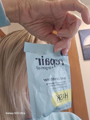 [This review was collected as part of a promotion.] I absolutely love the Hask Argan Oil Repairing Deep Conditioner! My hair tends to get dry, frizzy, and a little damaged from styling, but this mask makes it feel so soft and healthy after just one use. The texture is thick and creamy, so it really coats the hair well, and it rinses out without leaving any heavy or greasy residue. The scent is amazing—light, fresh, and salon-like, but not overpowering.