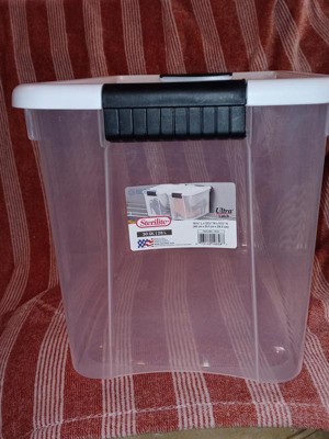LATCH CLIP BIN: Organize your home and keep clutter-free with the Sterilite 70-quart and 30-quart stackable storage containers with white lid and black hinged latch clips