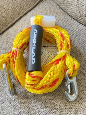 [This review was collected as part of a promotion.] Airhead are heavy duty ropes that lifts and tows boats, water skiing, wakeboarding, kneeboarding, 2-4 rider tubing. This one is range for 12 ft and is a good amount with fast and ez-kwick connect attachments in place.