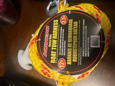 [This review was collected as part of a promotion.] The airhead heavy duty tow harness is a high quality product. It is easy to hook up to and gives the perfect amount of length for using in the river. The bright color allows others to easily see you are towing.