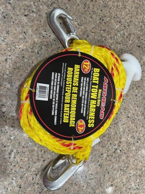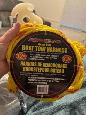 [This review was collected as part of a promotion.] The 12' Tubing Tow Rope Harness is a game-changer for anyone struggling with troublesome tow points. This extra-long, heavy-duty harness easily stretches across wide beams, making it perfect for 4-person towable tubes, water skis, wakesurf boards, and wakeboards. It's a breeze to use—just clip it onto your boat and attach your ski, board, or tube rope to the heavy-duty Kwik-Connect system. With a break strength of 4,100 pounds and a 6-inch float that keeps the Kwik-Connect above water and away from the propeller, it's ideal for pontoons and larger boats. Whether you're towing up to four riders or using it for different water activities, this harness ensures efficiency and safety for the whole family.