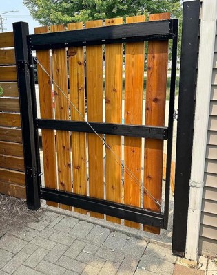 [This review was collected as part of a promotion.] This gate works perfectly. The instructions were easy to follow and all parts were included. We just had a home supply store cut lumber to fit frame and followed instructions. It attached to our existing fence so well and easily. The gate swings effortlessly and is very secure. I foresee this lasting a really long time. Highly recommend!