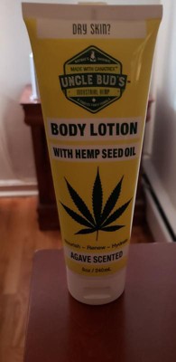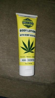 [This review was collected as part of a promotion.] I gave my mother this nice-sized tube of hemp agave lotion. I've used it on some of my dry patches as well, it works great. Keeps your skin moisturized, and has a wonderful smell. Lots of great, healthy ingredients in it. I'd love to see a CBD-based version of this lotion. Thanks Uncle Bud!