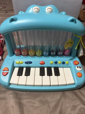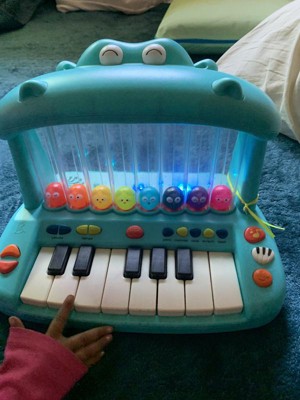 Have twin daughters (18 months), both are obsessed with music. While one has taken to percussion, the other has been OBSESSED with the hippo keyboard. I’m only giving it four stars for two reasons. #1- I’m on my 2nd keyboard, she broke the first one. Not totally a design flaw as this child is a madman and is constantly on the move and used to step on it when she’d get excited about this or that. #2- this what actually is taking the star off- there’s a function on it that if you press a certain button, every time you press any key it advances a song (I think it’s usually London Bridge is falling down). Since she figured out that she can play a melody (I used her hand to play half of “chopsticks” and had her play through “bubble bubble bubble” and now she tries to play it by herself) she gets upset cuz the keys don’t play what she wants them to. I get that it’s a kids toy but I wish there was a way to disable this function.