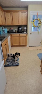 I purchased this online last week and just received it and I love it! It's beautiful and goes well with the colors of my kitchen! Also my dogs love it!
