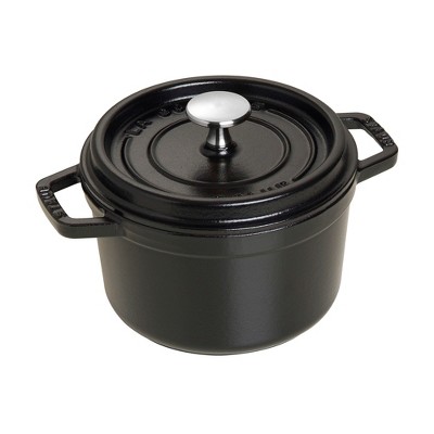 This Staub cast iron .5qt. cocotte is wonderful, fun and exciting. This size is great for single-serve soup, gratin, cake, bread, pot pie, and great for strawberry dipping, salsa and I love spinach artichoke cheese dip. This cast iron cocotte size is perfect, possesses exceptional heat-retaining qualities, so the pot heats evenly throughout, and it is light for being small. The innovative lid features tiny spikes on the interior that continually release condensed liquid back onto the food, yielding moist, flavorful results. It is dishwasher safe and oven safe. Smooth enamel bottom works on all stovetops, including gas, electric, glass, ceramic, induction, and halogen. These heirloom pieces can be passed from generation to generation. Handwashing is recommended.