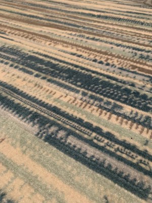 This rug just arrived and I am so very pleased! It fits my small room well and has a nice combination of colors. It’s a thinner rug - perfect for me as my cats love to sharpen their claws on deeper pile rugs- and it will flatten out with a little time.