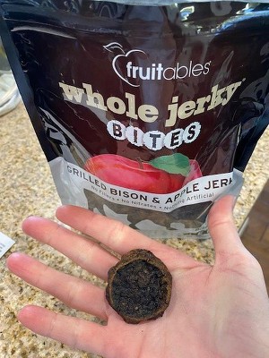 These are brittle disks of dry bison and apple goodness. I eat simple and healthy and I feed my pets...who are my family...the same. These are high quality, limited ingredient and my little, allergy riddled putz loves them. I highly recommend them if you want a crunchy treat for your furbaby. If you want jerky, Full Moon...also carried by Target is high quality, chewy deliciousness that is human grade goodness.
