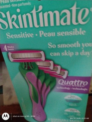 Schick Skintimate Sensitive Skin Women's Disposable Razors - 4ct: Legs Application, 4 Blades, Manual Power, Not Travel Size