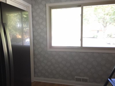 This wallpaper really transformed the back wall in the glass cabinets in my kitchen!