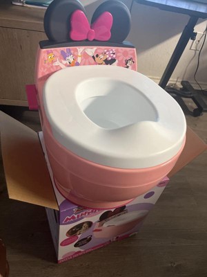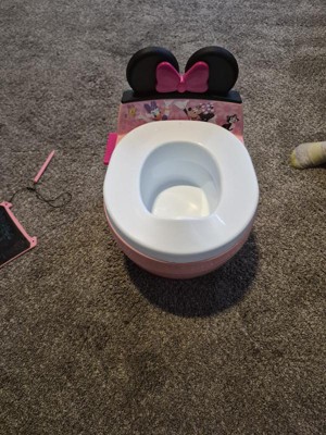 The Disney Junior Minnie Mouse potty training toilet is designed to make potty training fun and engaging for toddlers. With its adorable design featuring Minnie Mouse ears and realistic flushing sounds, it captures children's attention and encourages them to use it. The potty is easy to clean and can transition to a regular toilet seat, making it a practical choice for parents. However, some guests have noted concerns about its durability and assembly.
