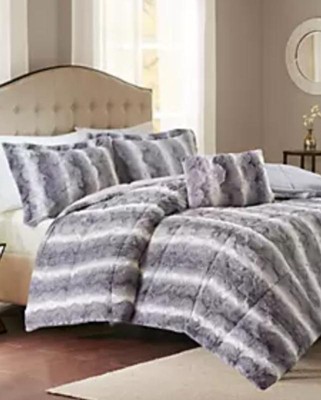 - Soft faux fur comforter set; End to end box quilting to secure the filling