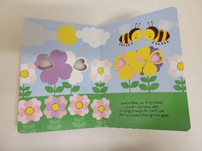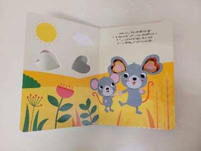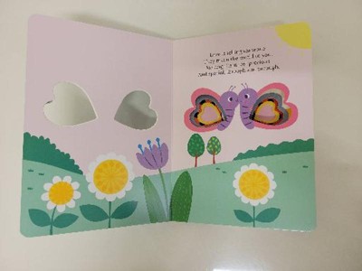 This is one of my 6 month old's favorite books! She will sit quietly through the whole book. I think she likes the pictures with bright colors and that it rhymes. The heart cutouts on the butterfly's wings from the cover continue to grow smaller throughout the book. This is an adorable book that teaches little ones what love is.