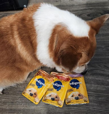 [This review was collected as part of a promotion.] Okay, so I've been trying out these Pedigree Pouch Traditional Ground Dinner packs, and they're a real winner at home! First off, the individual pouches are super handy, perfect portions and no messy leftovers. And the taste? Let's just say my dog loves them. I even gave some to my neighbor, and her dog apparently devours them in seconds! Hilariously, even my cat keeps begging for a taste ever since my boyfriend added this to her meal by mistake (and yes, I sneak her a little bit!). Taking a look at the ingredients, they've got a good mix of meat and grains, plus added vitamins and minerals to help keep dogs healthy and energetic. It's a "ground dinner," so it's a nice, soft texture that's easy for them to eat. You get 30 pouches in a pack, and the price is pretty reasonable, especially considering how much the pets seem to enjoy it. I'd definitely recommend giving these Pedigree pouches a try!