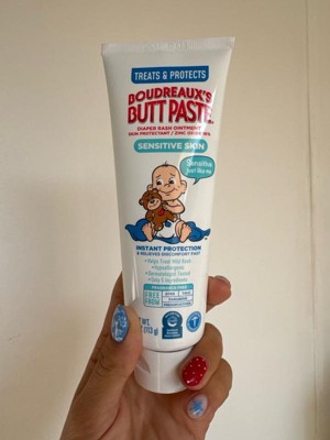 [This review was collected as part of a promotion.] Boudreaux’s Butt Paste Sensitive has been a total lifesaver for our baby’s diaper rash. It’s super gentle on delicate skin, free from harsh ingredients, and clears up redness fast—sometimes overnight! The texture is thick enough to stay in place, but easy to apply and wipe off. We don’t go anywhere without it now. A definite must-have for every diaper bag!