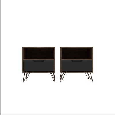 1.0 Rockefeller Nightstand Brown - Manhattan Comfort: Modern Bedside Table with Storage, Shelving & Metal Glides