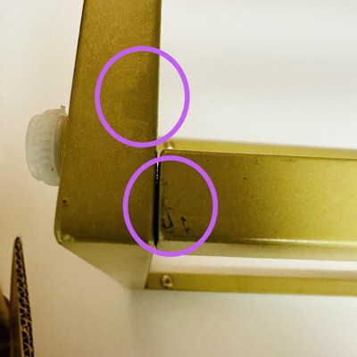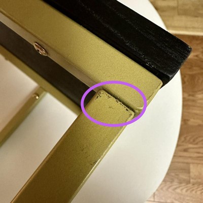 Not made very well. The gold paint (or whatever it is) has some deviations like light spots. There are also scuffs & even a small chip in paint on one of the legs. Disappointed quality control isn't better.
