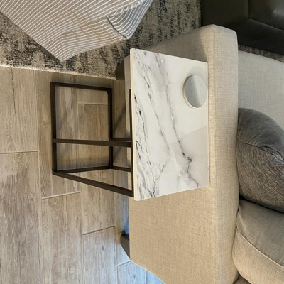Harton C Shape Side Marble Top Table White - Serta: Modern Metal Frame, Powder-Coated Finish, Rectangle MDF Top, 23.6" Height
