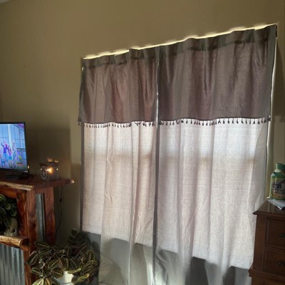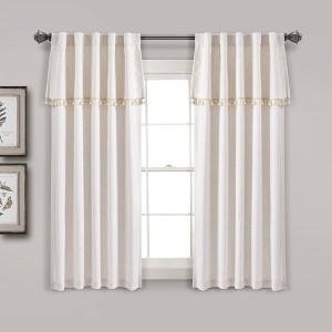Set of 2 (63"x40") Ivy Tassel Light Filtering Window Curtain Panels Beige - Lush Décor: Modern Linen Short Curtains