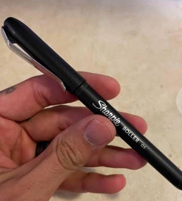 So far so good I can’t go wrong with a sharpie!! The rollerball pen tip comes in other colors Writes on literally anything skin, plastic just about anything without bleeding through paper