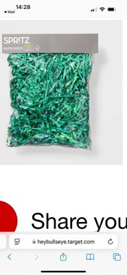 Really cute crinkle paper shreds for gift boxes or Easter basket even. The green shreds are almost a sea foam tinted green color with iridescent shreds in there to give sparkle. The paper is good quality for what we needed.