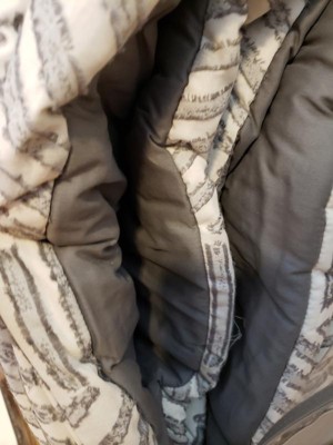 [This review was collected as part of a promotion.] This King Comforter was very fluffy and soft. It fit over my King mattress perfectly and provided the pattern I wanted without being too crazy for the room. It was a nice gray adn was modern and nice. I also liked that it came with 2 shams and I added other pillows but those 2 shams tied it together nicely. It felt like nice quality material and was warm but not too hot when used.